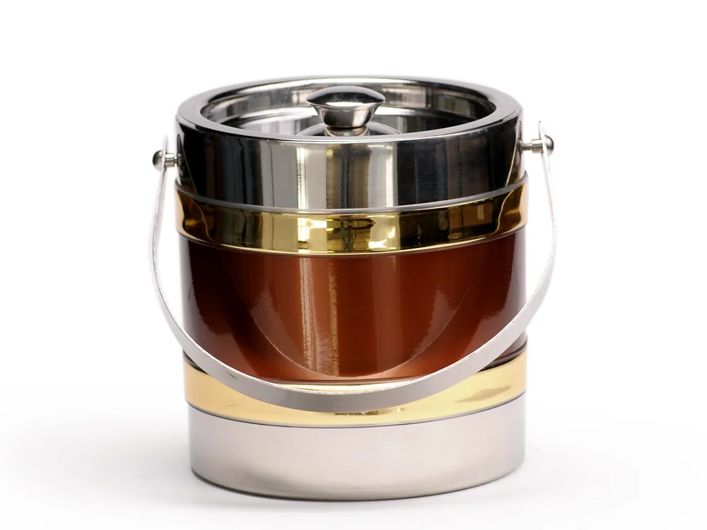 The combination of stainless steel and copper offers a sleek, modern look with a touch of elegance. The stainless steel provides durability and insulation to keep ice cold for longer, while the copper accents add a stylish contrast.